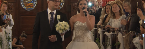 While waiting, the Norwegian church doors slid open and Ronny was able to spot Maria marching down the aisle with her dad while holding hands. Maria had entered the church with a microphone in her left hand. Suddenly she neared the microphone to her mouth and started to sing “You Raise Me Up.” Ronny and all the crowd at the church were shocked. Her dad also joined her and they sang together the song, changing a few lines to suit the wedding ceremony. The father told the crowd that the time had reached for him to hand out his daughter…