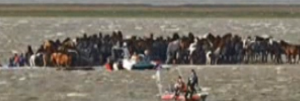 This happened for real. While the Firemen feed the horses to keep them alive and strong as they figured out a way to get them out of the “island,” another storm was fast approaching. Norma Miedema and some other ladies couldn’t let that happen, so she formed a group and teamed up with her friends to save the horses. The only qualification for joining the group was just the courage to ride a horse in the waters, and 7 cool ladies were brave enough to take it up!