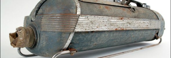 Funny, I had no idea what this was, but I asked my wife and got it right away. Did you know? This was a Hercules vacuum cleaner. The design is wonderful! look at the crocodile skin, who would believe this material could be used for a vacuum cleaner?