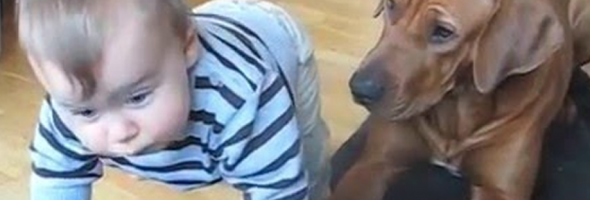 In this featured video you will meet Lea. Lea IS A Rhodesian Ridgeback dog and is one that is extremely loving and protective of her newest little human Alfred. Alfred in this video is just a tiny baby who is more than a little curious and when he saw Lea’s bed he just knew that that he needed to go and check it out.