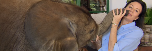 In the video, we observe the baby elephant getting a little rambunctious in Roxy’s home, knocking over dishes, plucking out the leaves of luscious house plants, peeing on the dining room floor, and even lying on the sofa! However, it’s all for a good cause. Moyo thoroughly enjoys exploring his world and learning everything he can from Roxy about her humanistic ways of life.