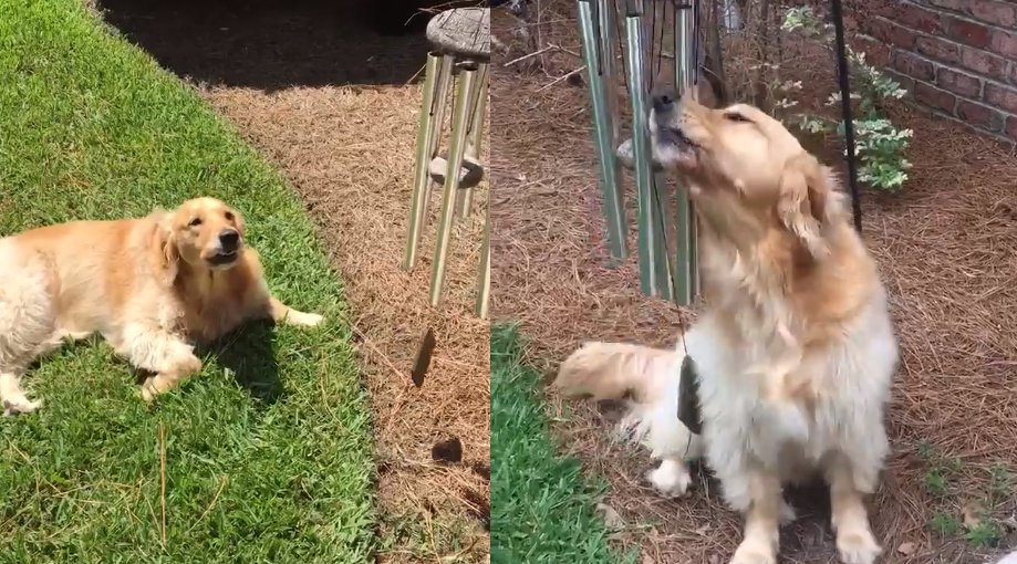 Dog Plays The Wind Chimes Every Day So She Can Sing Along