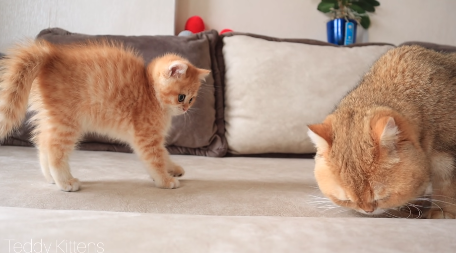 Watch the wonderful video, in which the authors recorded the first meeting of the cat and his two-month-old baby kitten. What a wonderful scene captured on camera!