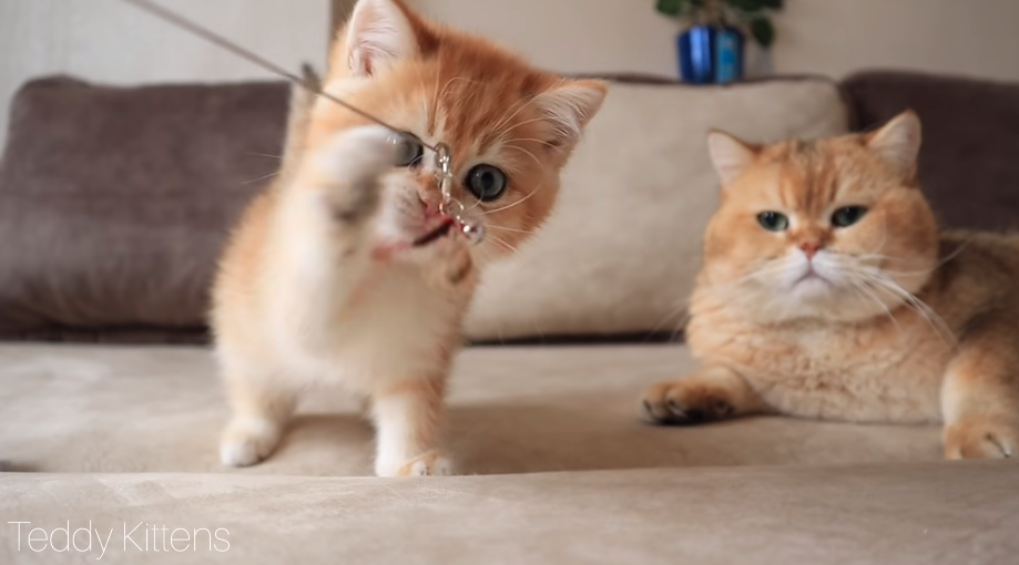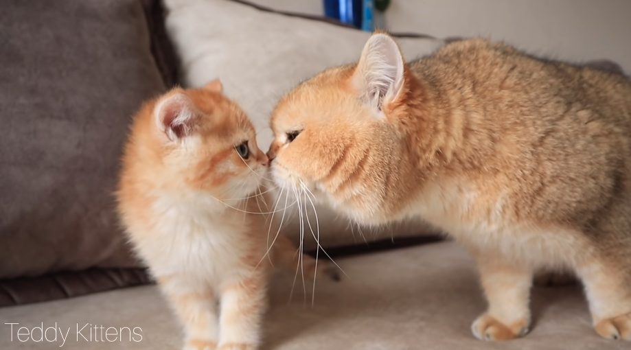 The video’s authors also wrote that the baby kitten’s mother is a British short-haired cat named Anabel with huge green eyes and bright coat color.