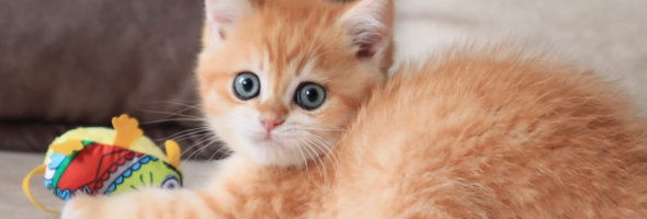 He is a very cute and playful baby kitten with very beautiful eyes and a bright sunny pattern on his coat. His mother is a British shorthair cat named Anabel with huge green eyes and bright coat color.