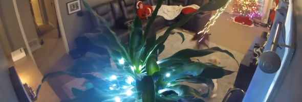 The family recently rescued a puppy from the street and brought him home to a hiding place, but the tree broke due to the dog’s curiosity.