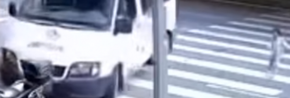 The van driver nearly collided with a three-year-old girl crossing the road at a pedestrian crossing. He drove too fast, but he managed to avoid tragedy – he stopped a few centimeters from the little girl.