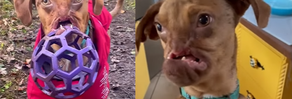 Picasso and Newt are dogs with similar characteristics, and both have a deformed head, but if they have loving owners, this does not affect their quality of life. They both live in Eugene, Oregon, USA.