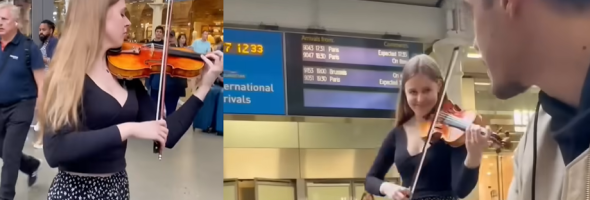 Aurélien Froissart was sitting outside at the piano, and then he received a special request – the violinist asked if they would play together the world famous hit.