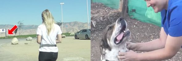 The story started to unfold when someone dropped off their dog in the middle of nowhere without any food or water. A Good Samaritan had noticed this dog living behind a gas station building and immediately called Hope For Paws.