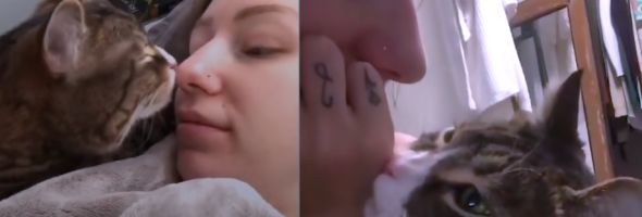 Watch a cute video of Lord Heather filming Milo with his cat every day. Another proof that a cat can cling to its beloved owner.