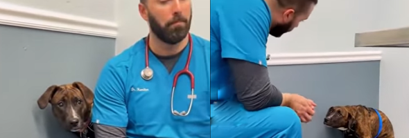 Watch this touching veterinary scene where Dr. Thomas Hamilton miraculously calms a frightened dog. Will he impress you with his procedure?