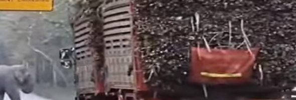 Elephants in Cambodia have learned to exploit their right of way and stop passing sugar cane trucks to steal a snack.