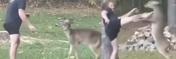 Watch an extraordinary scene where you can see a fight between a deer and a man. Have you ever seen a deer so aggressive towards humans?